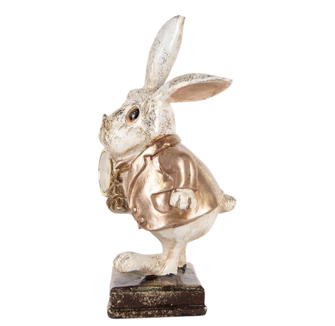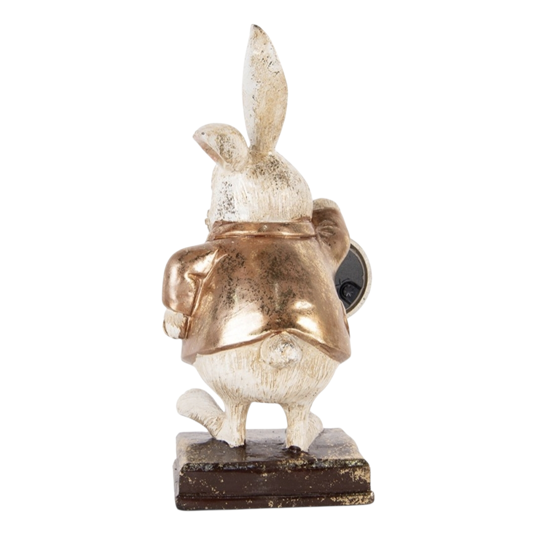 Clayre & Eef Decoratie Beeld Konijn 13x13x26 cm Beige Kunststof Klok