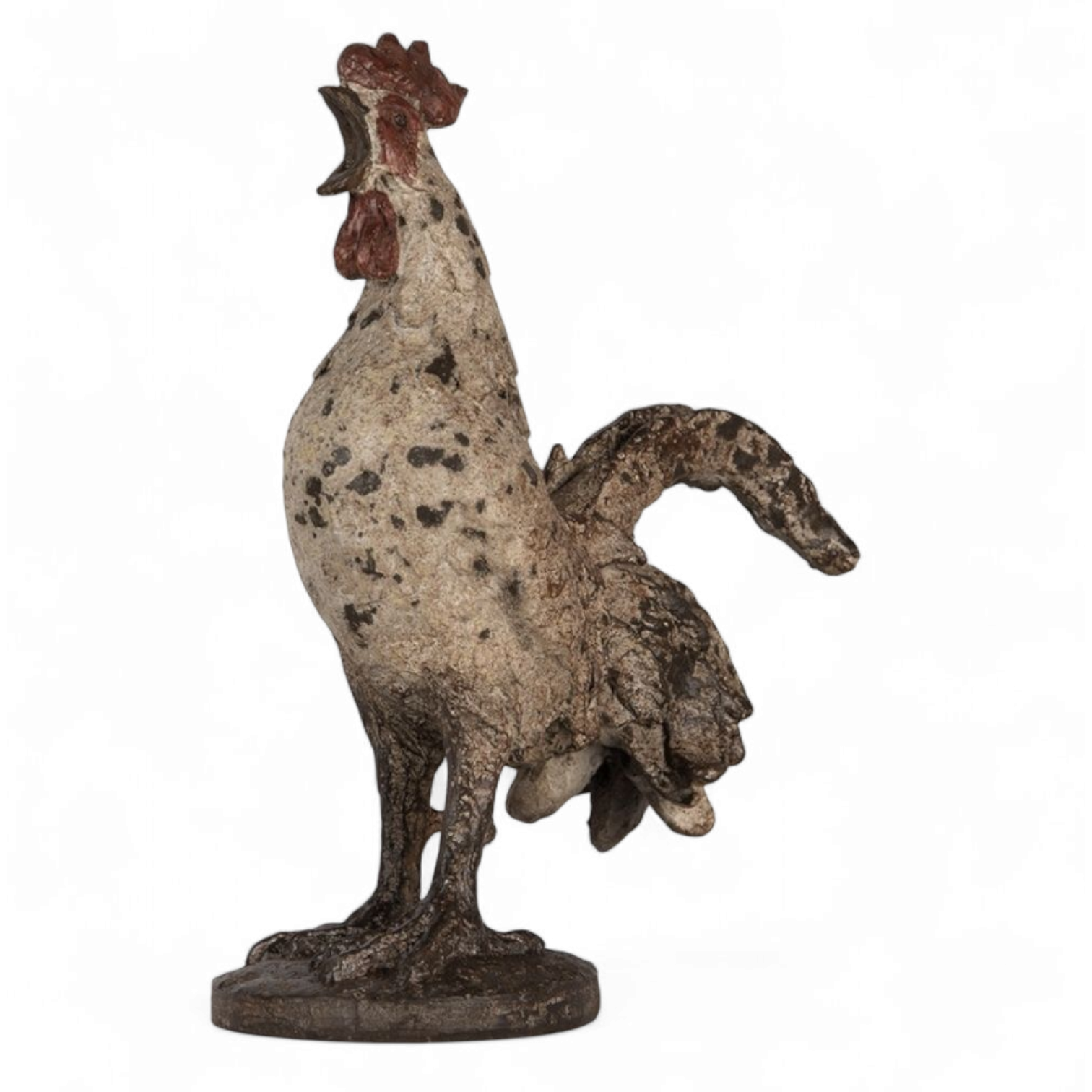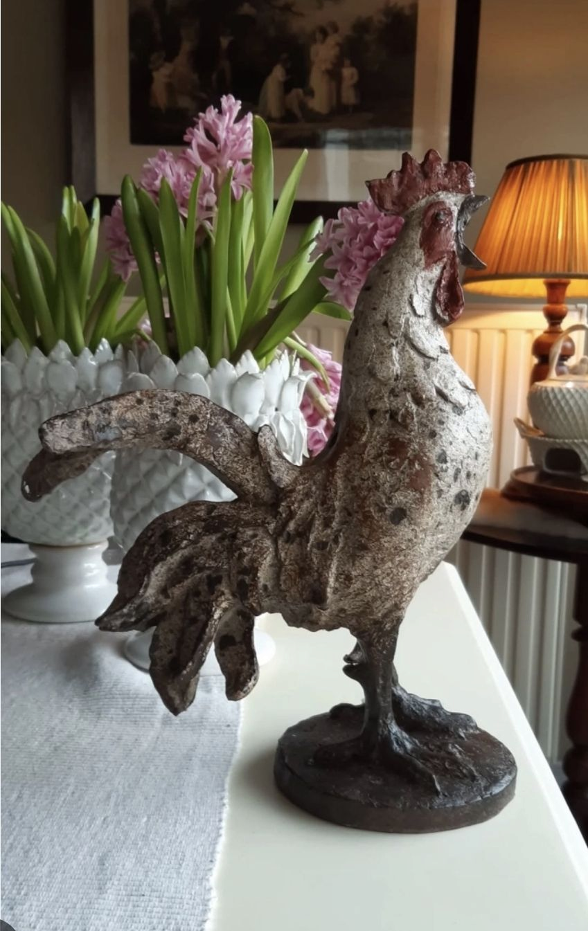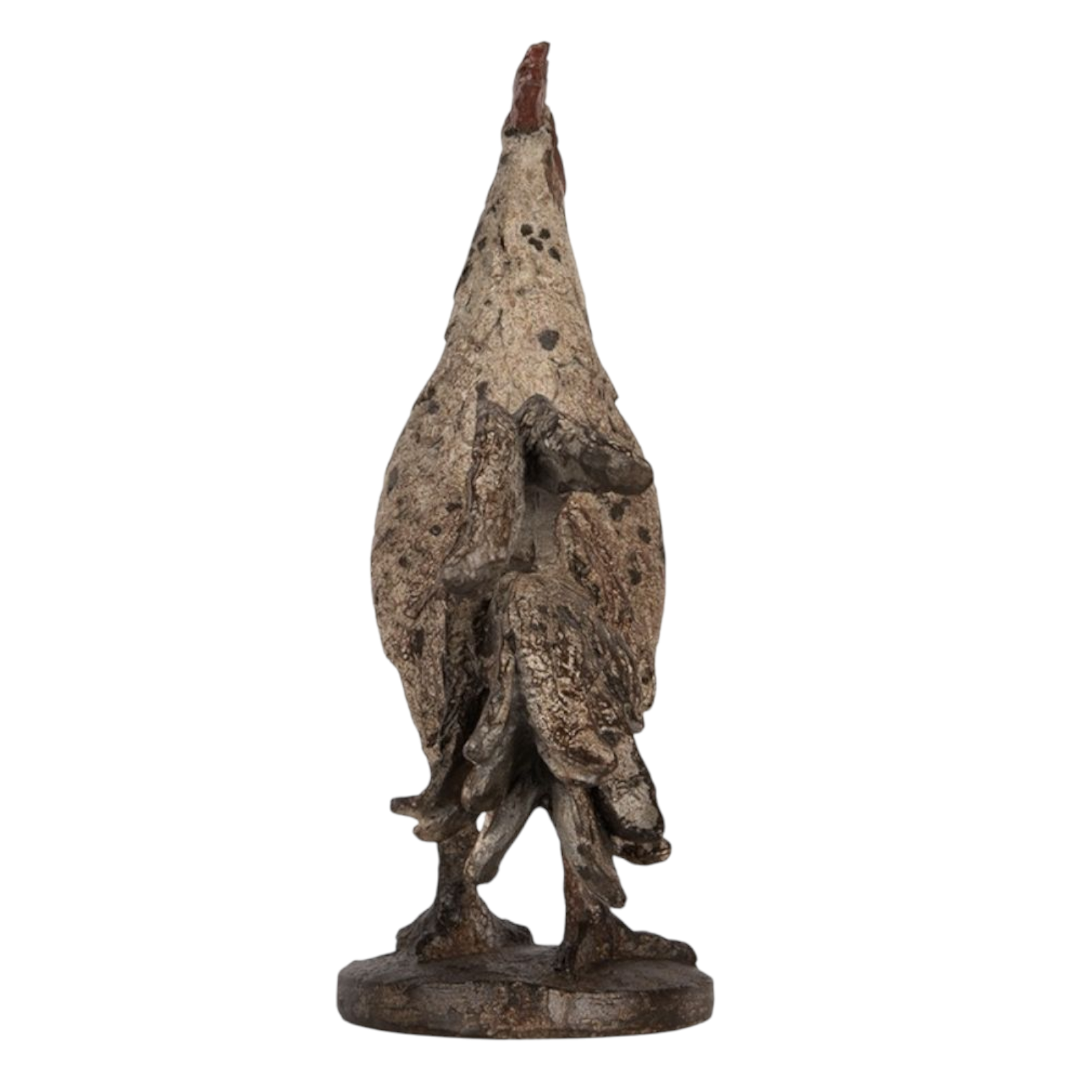 Een mooi decoratief beeld van een kip, gemaakt van kunststof. Een stijlvolle botanische decoratie, perfect voor zowel huis als terras of overkapping