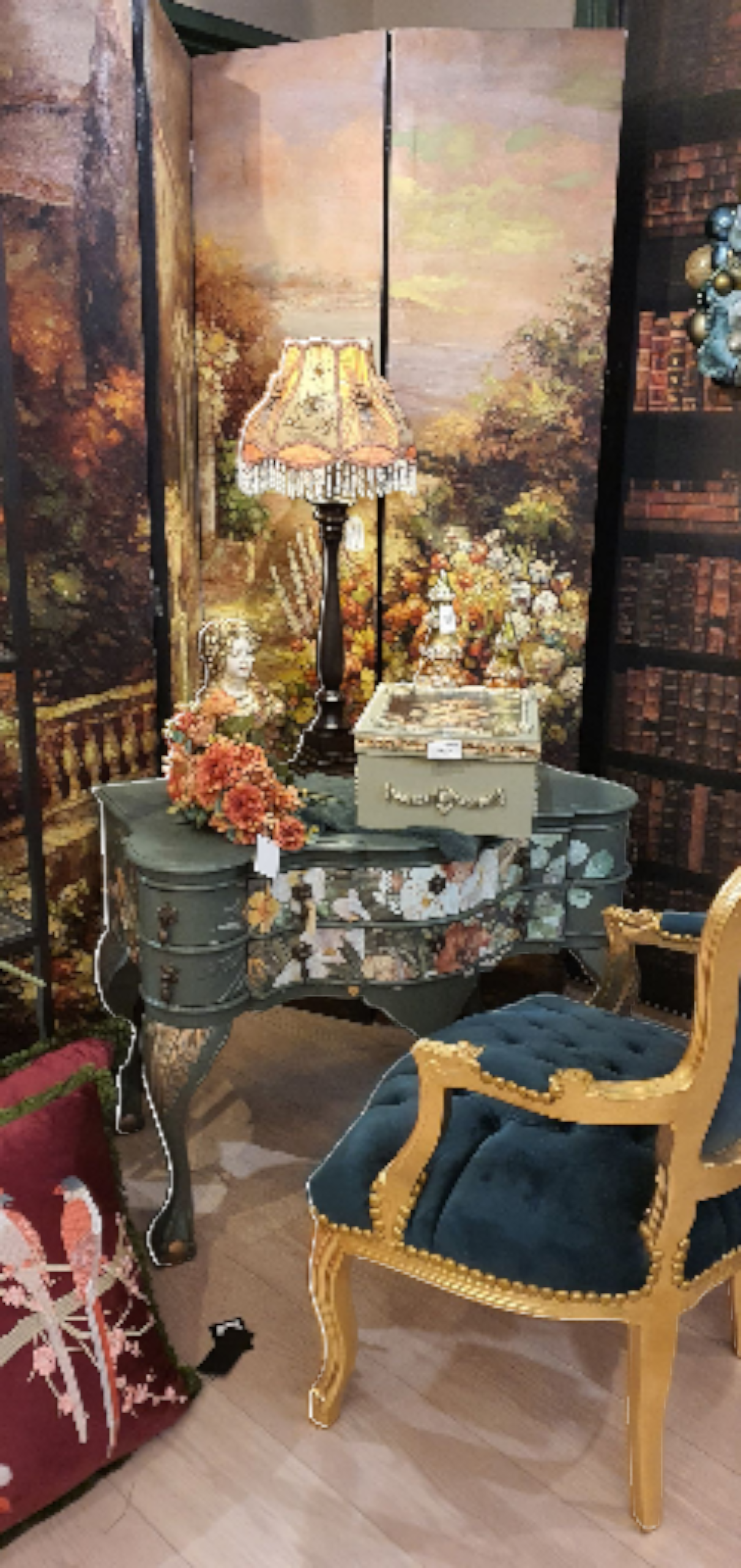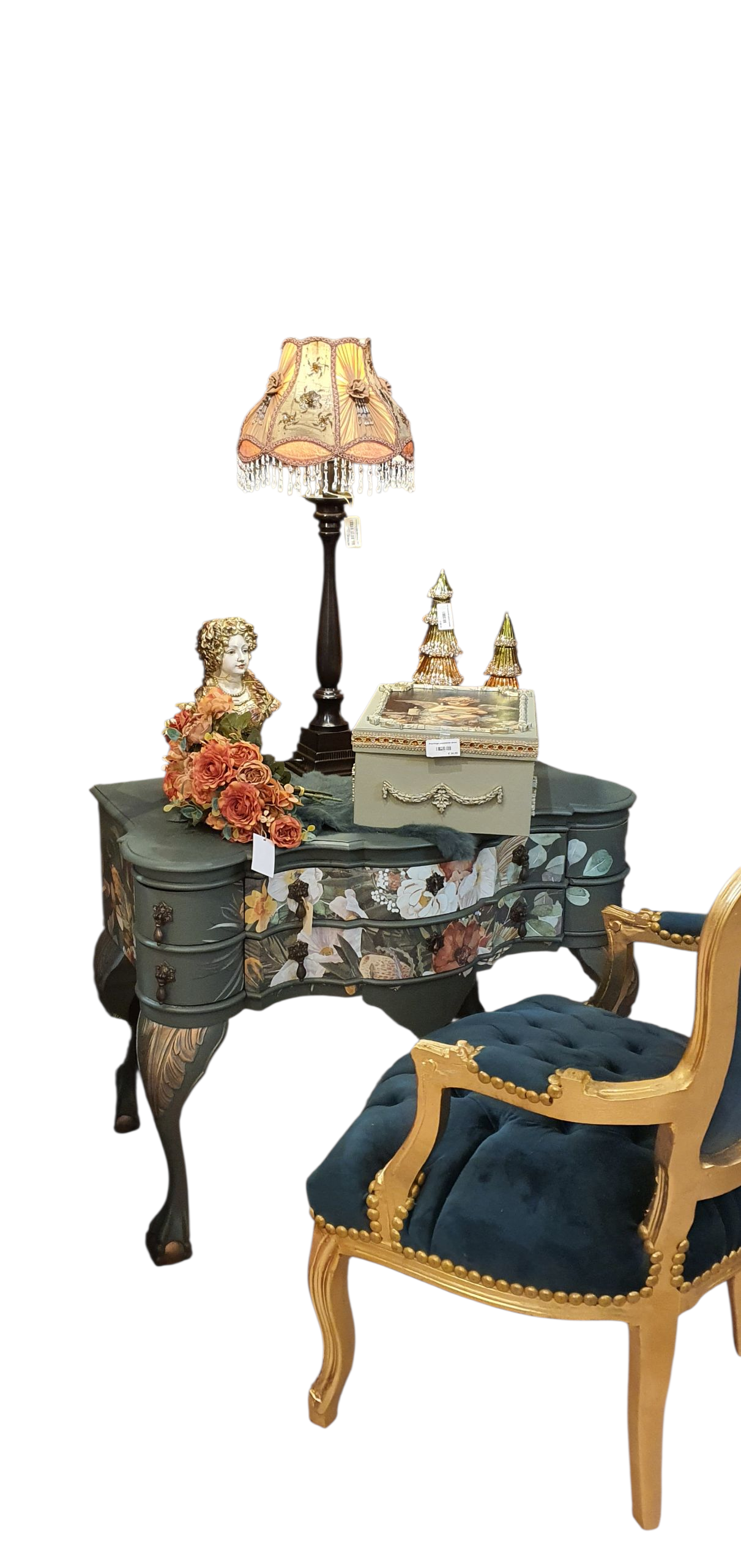 Heb deze ladekast in antiek groen gerestyled en met gouden accenten afgewerkt.