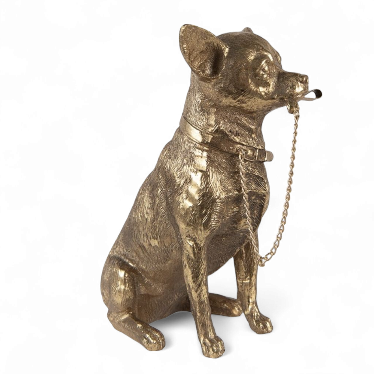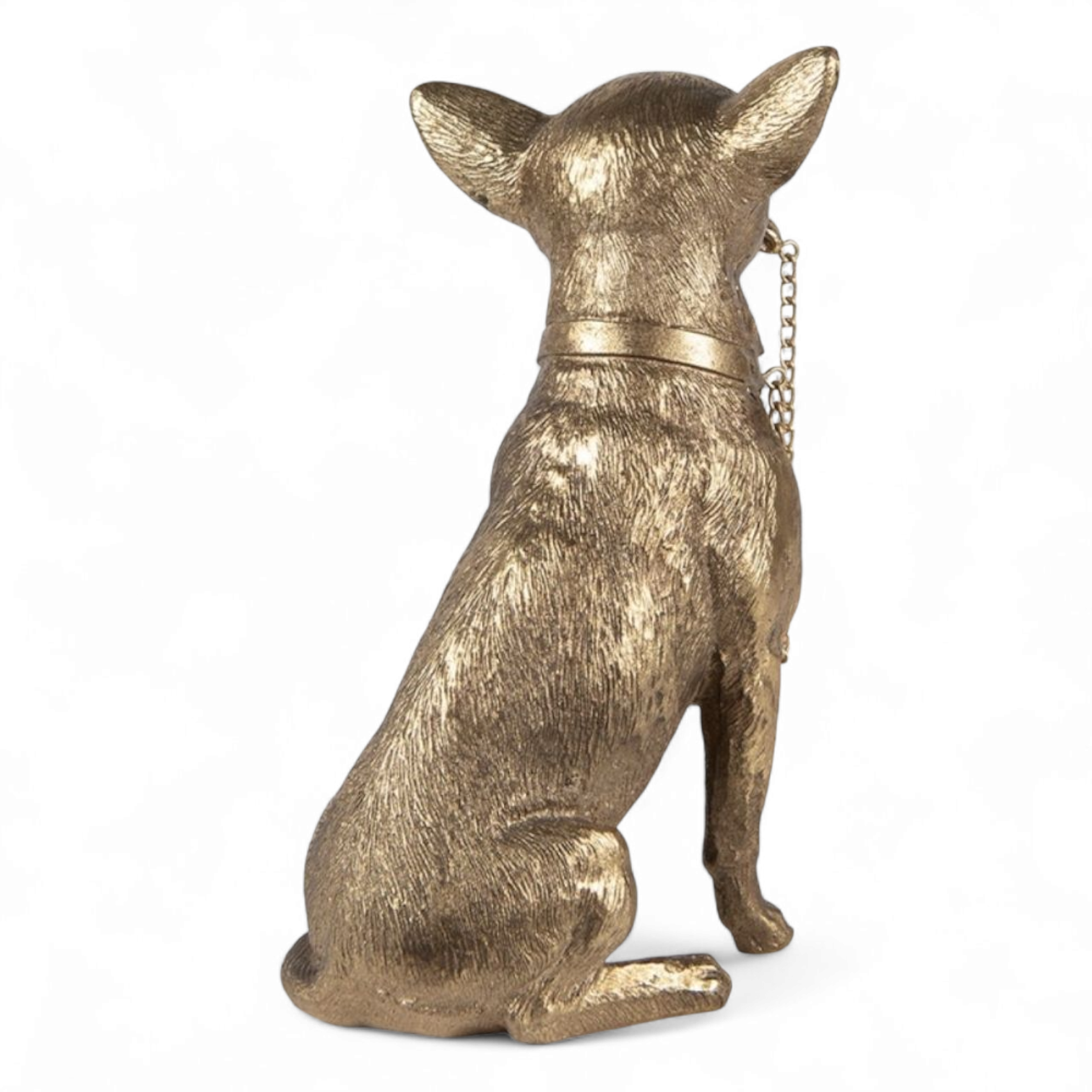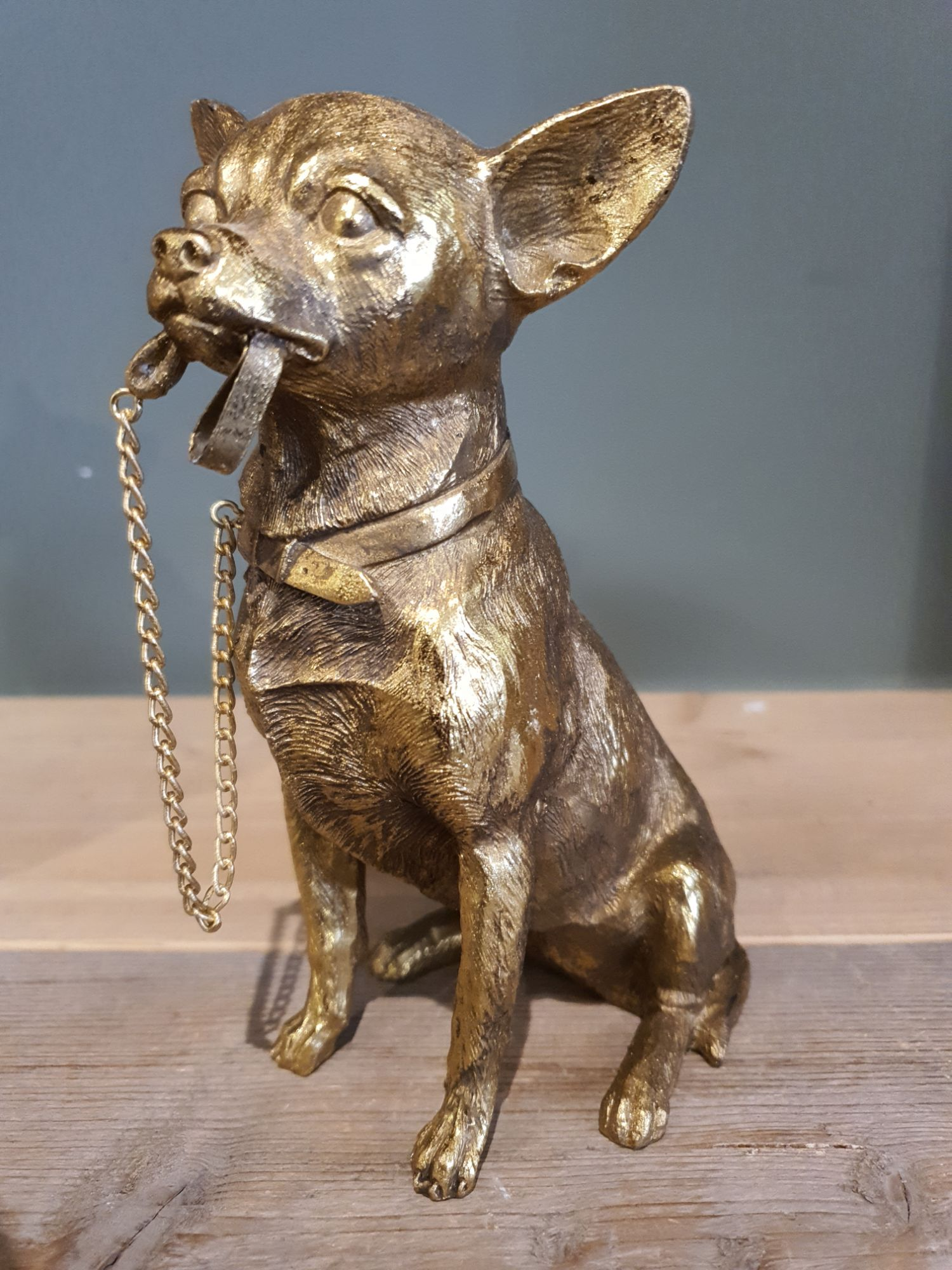 Beeld Hond chiuwawa 13x9x18 cm Goudkleurig Polyresin.