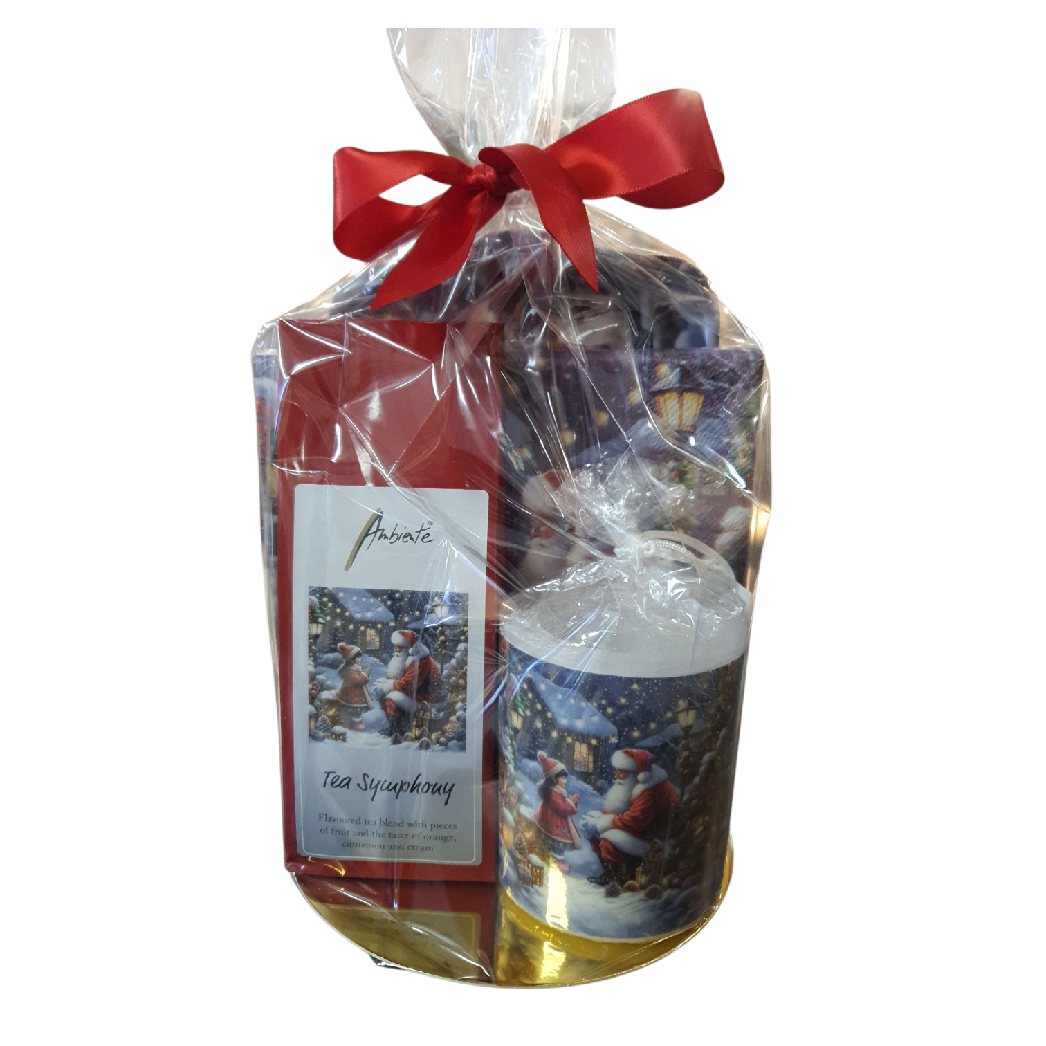 Kadoset zittende kerstman met kaars dienbladen servetten en thee
