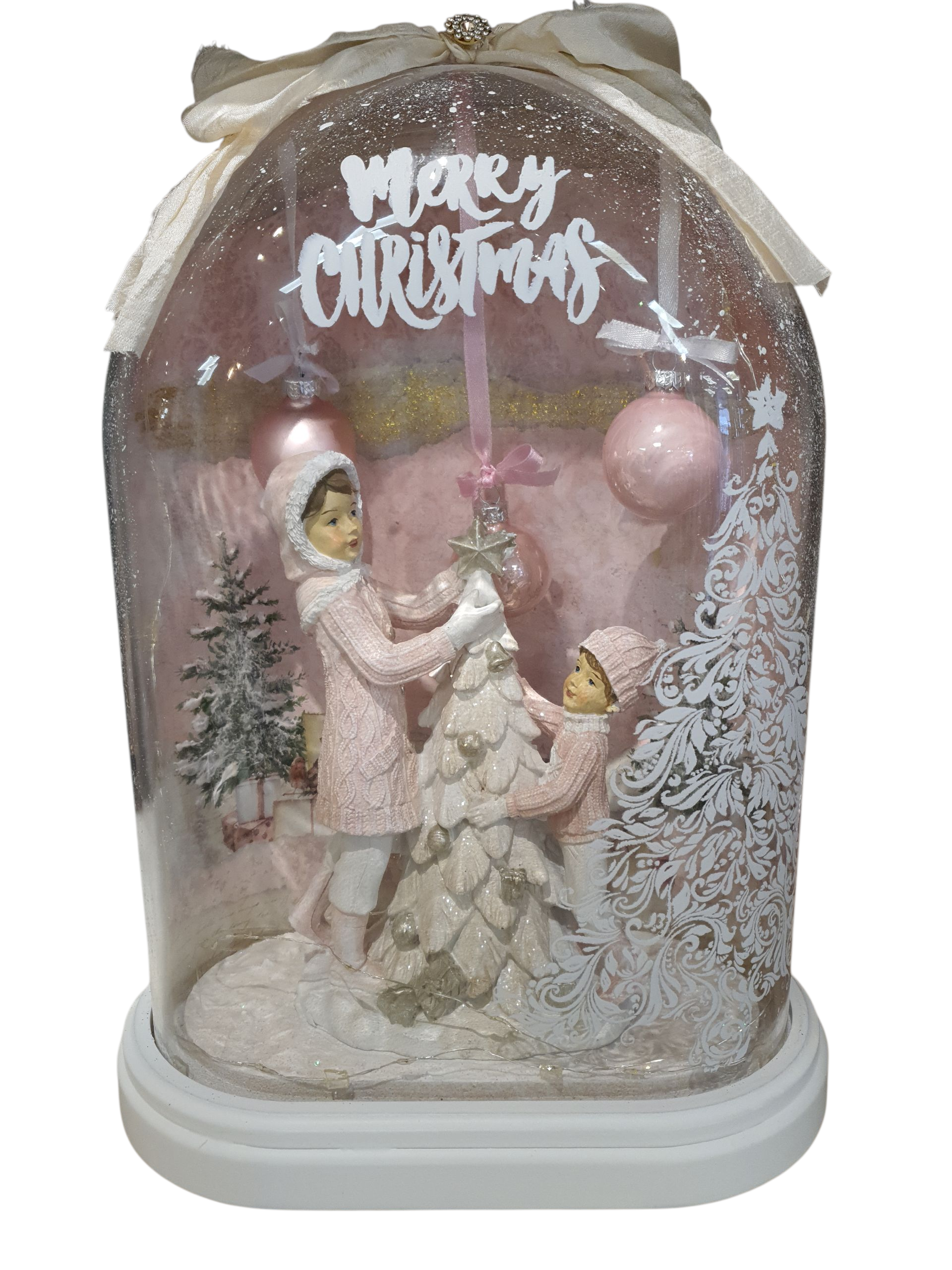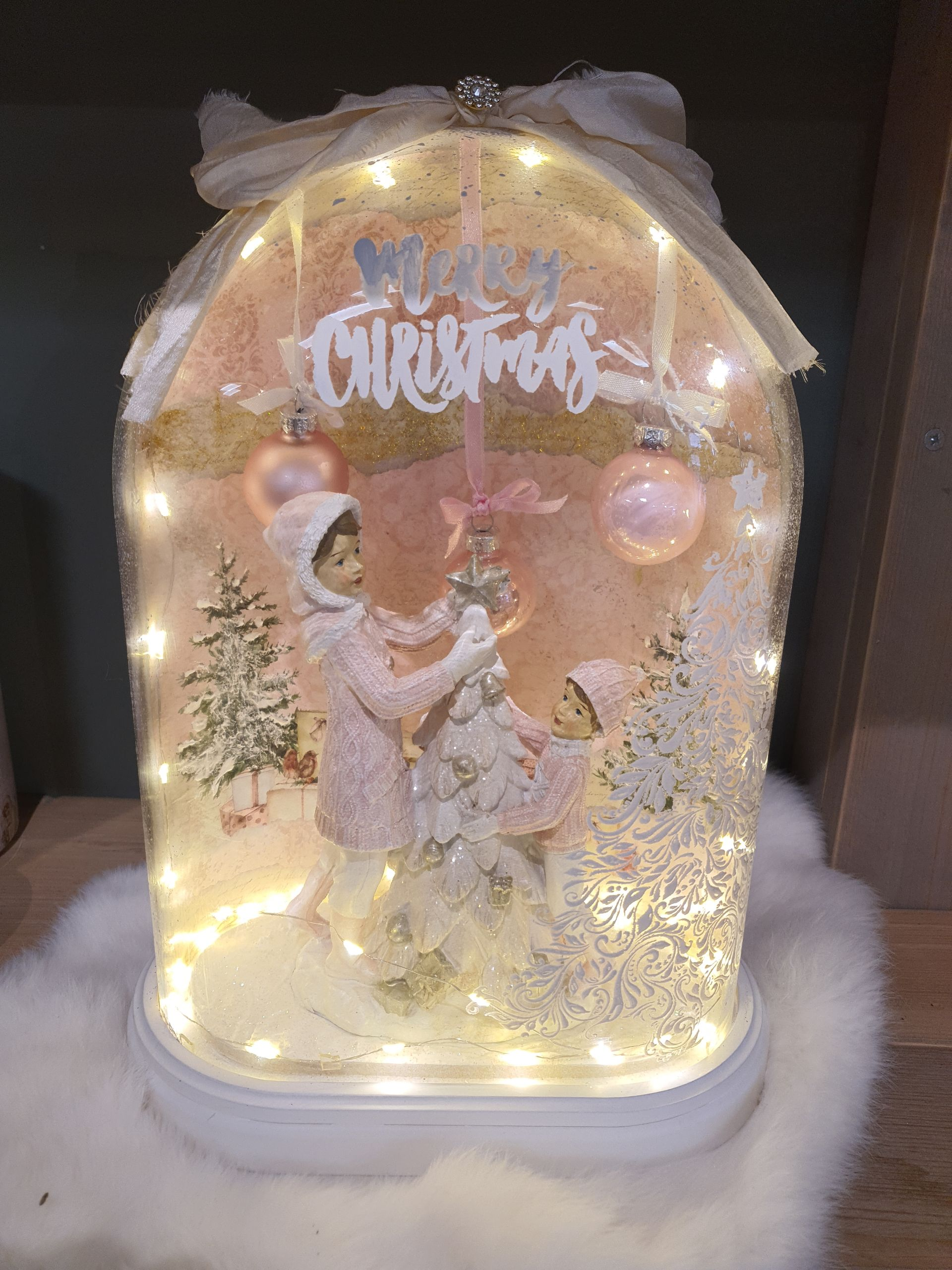 Prachtig opgemaakte kerststolp met verlichting