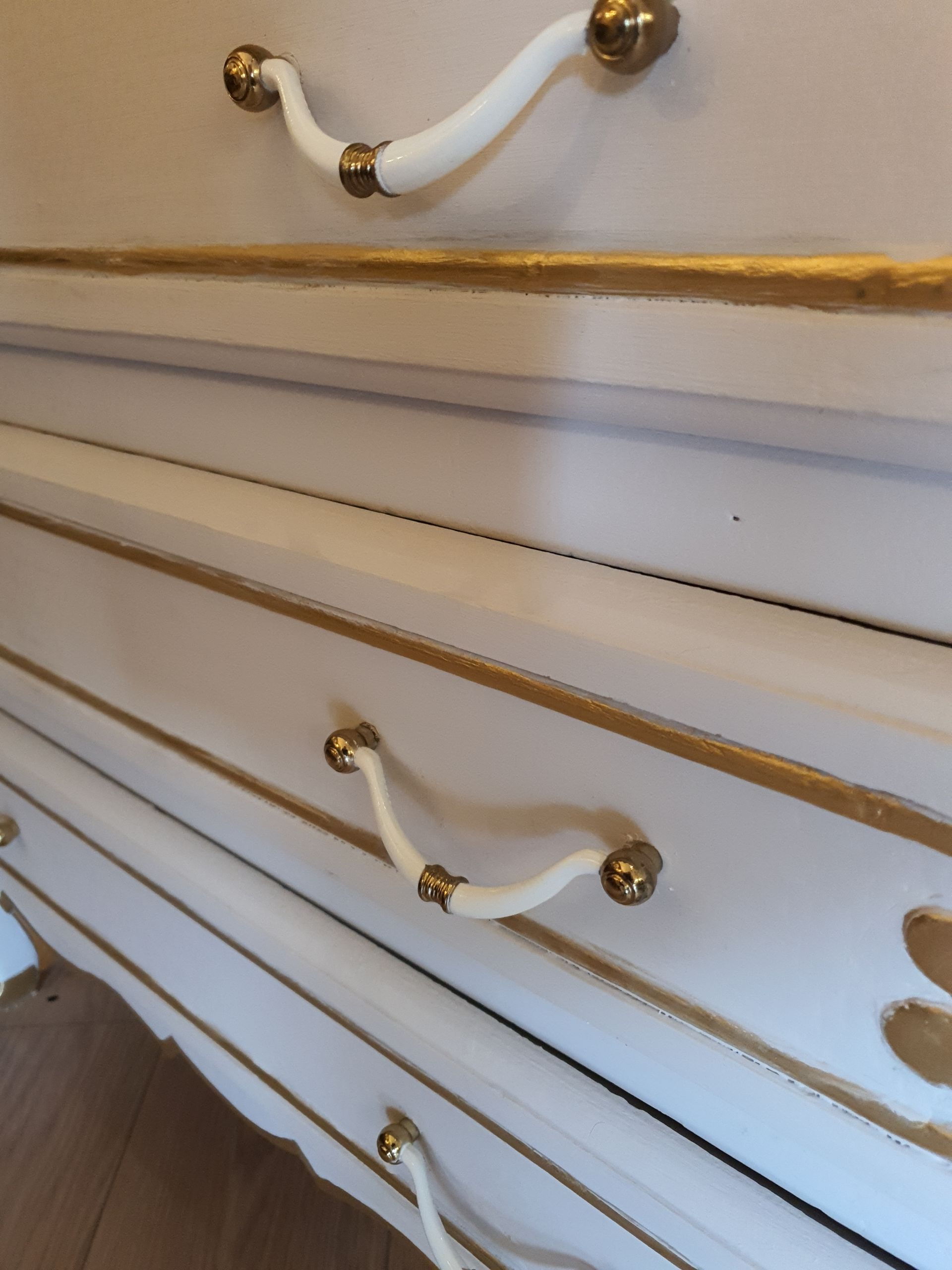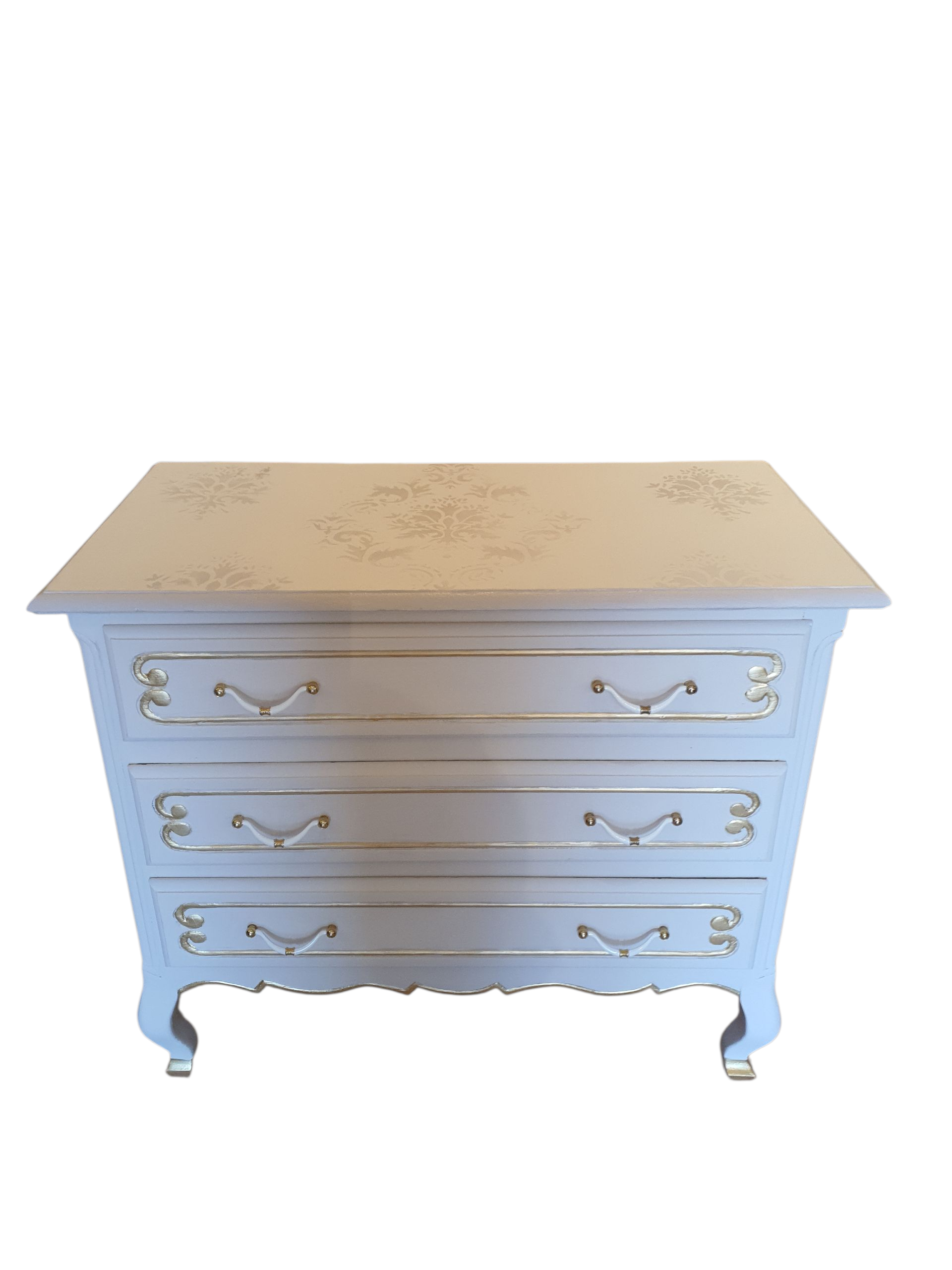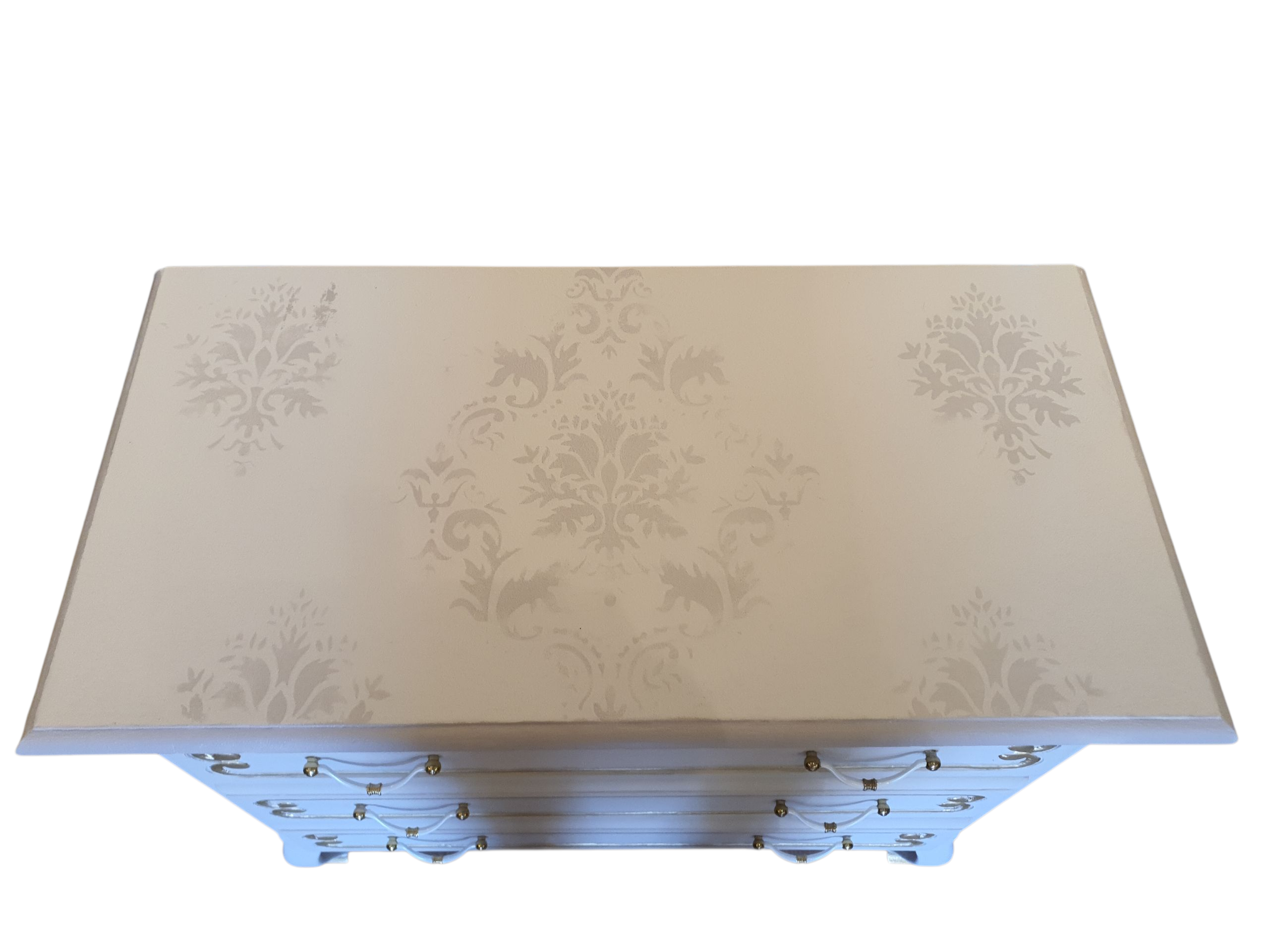 Prachtig gerestyld 3 ladekast met bovenop sjablonen