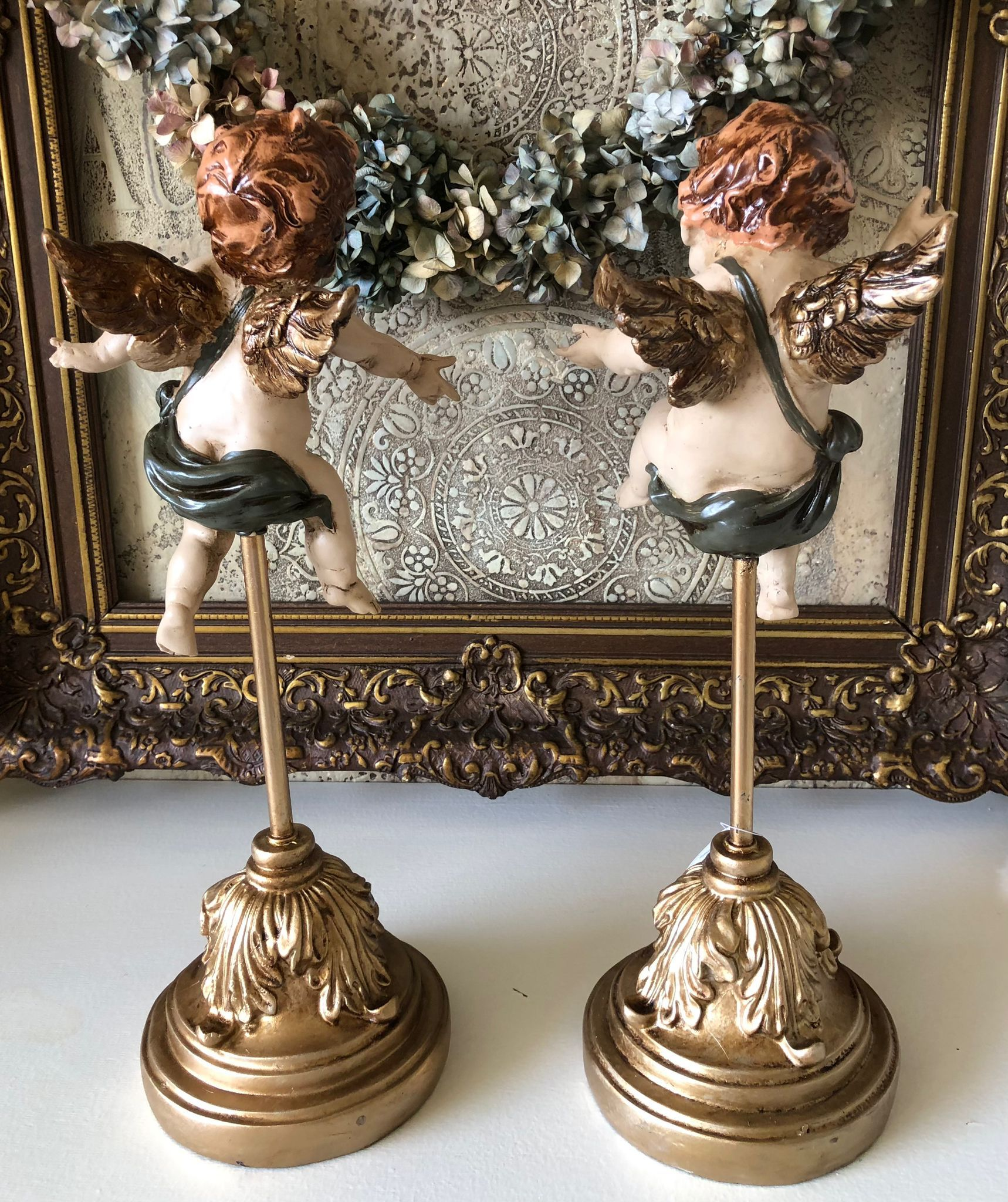 Deze 2 prachtige Engeltjevoets van dutch style staan niet voor niets op een mooi voetstuk geplaatst! Hoogte: 41 cm.