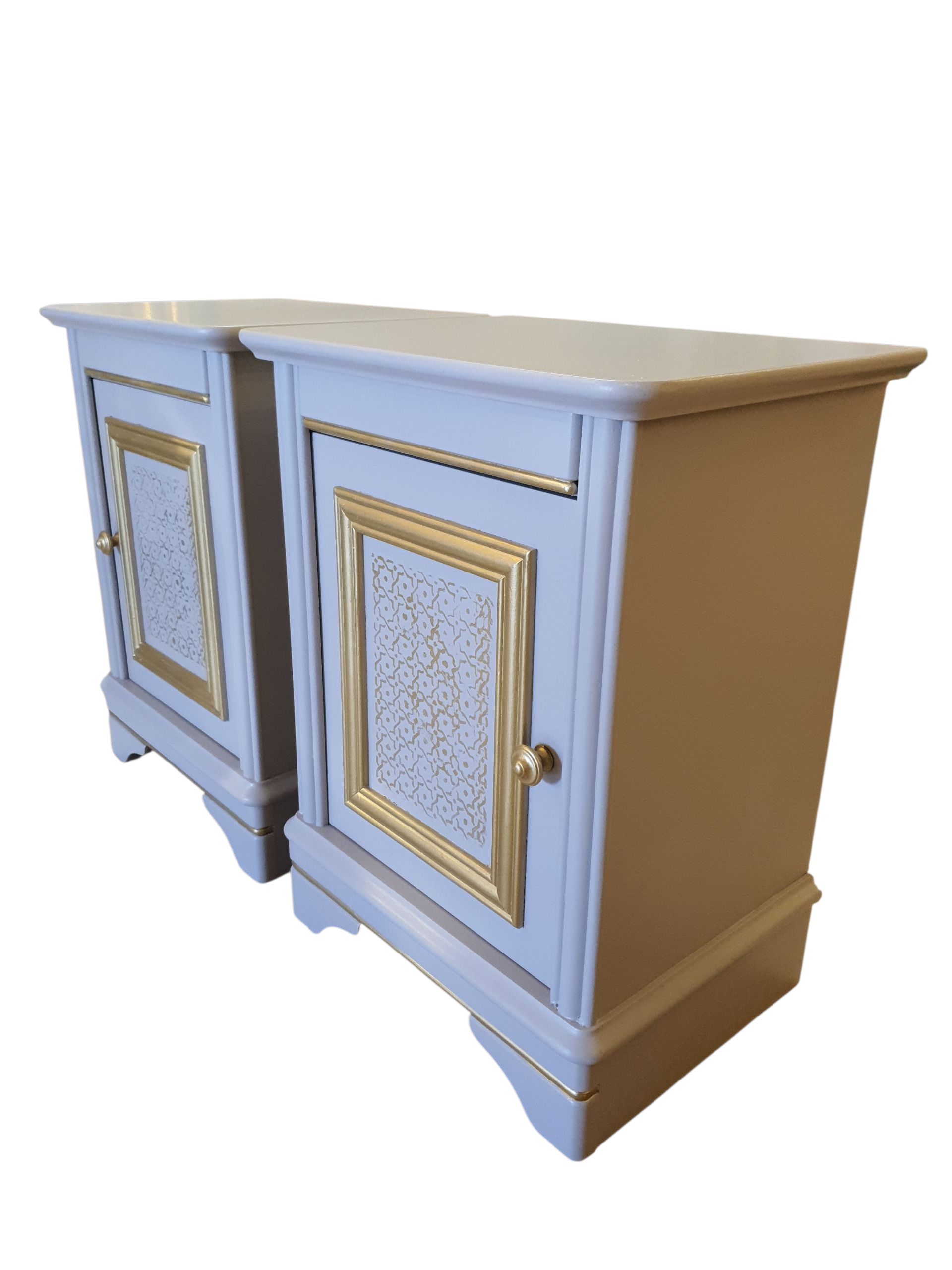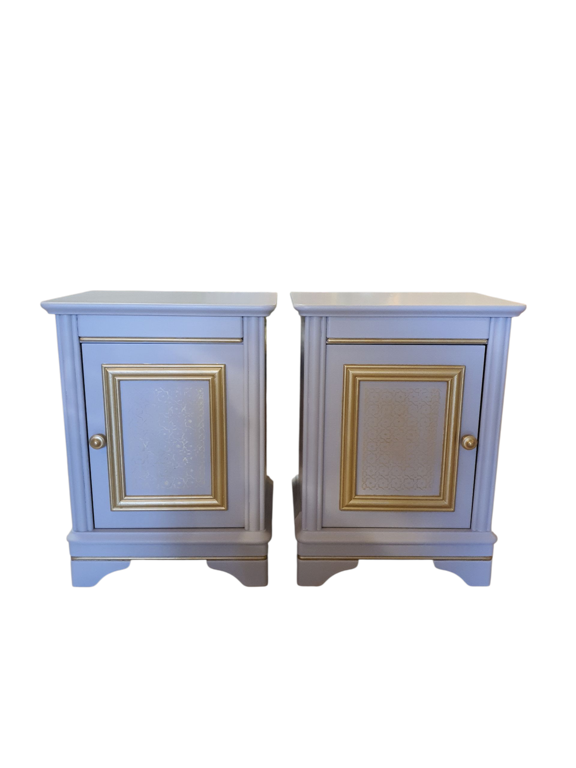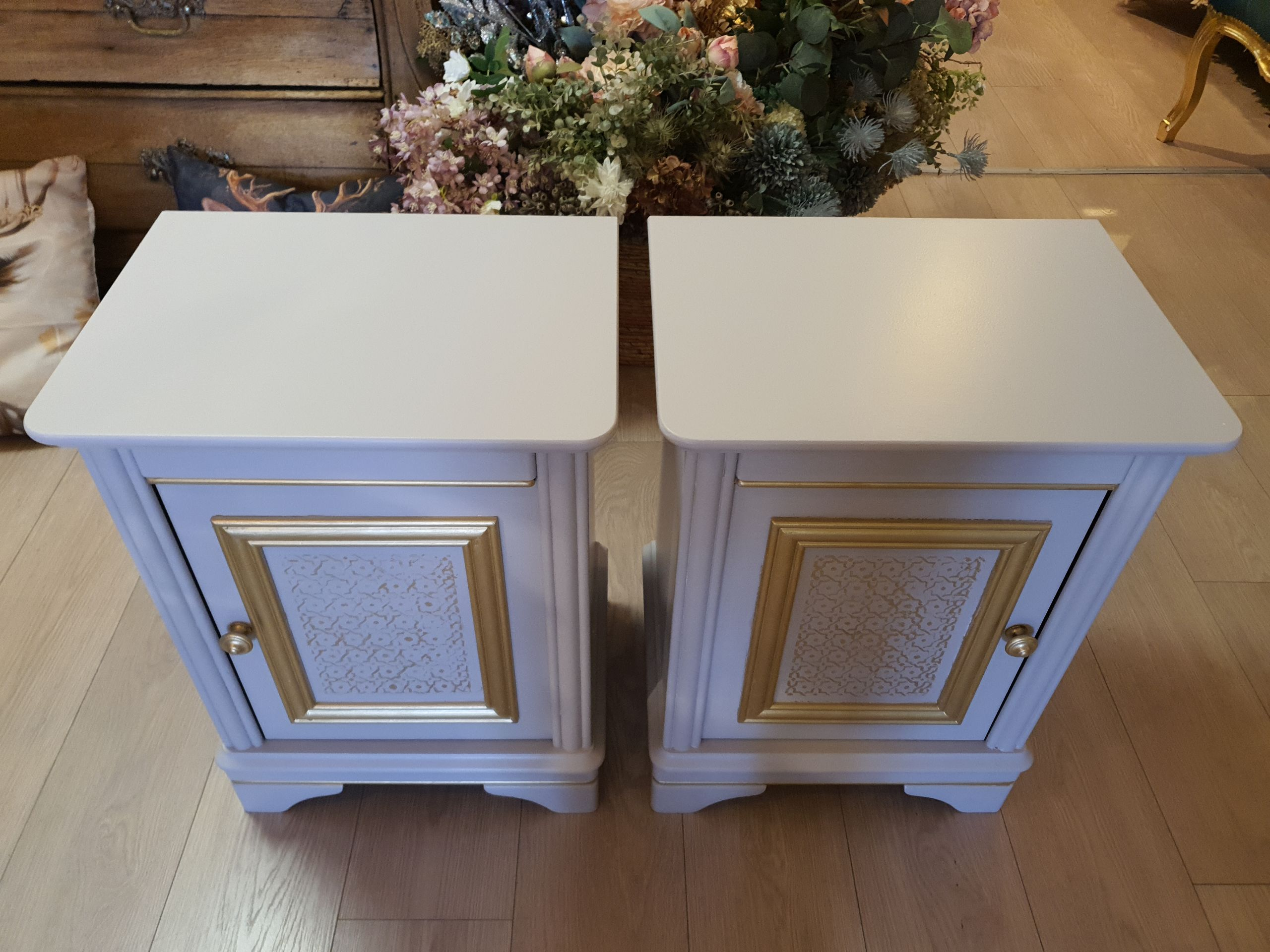 Set gerestylde Nachtkastjes in de kleuren Taupe met gouden accenten