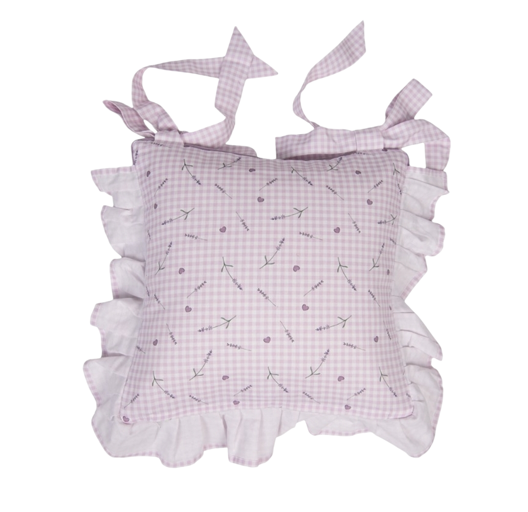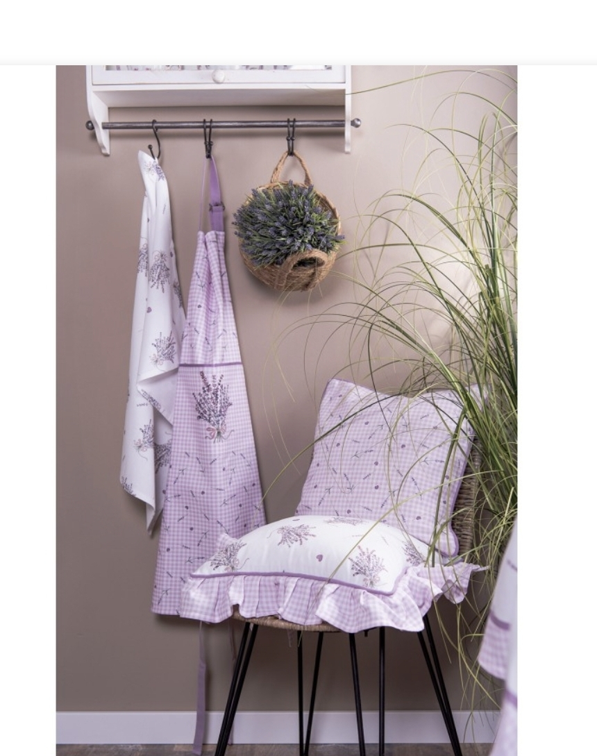 Katoen stoelkussen hoes lavendel motief in romantische stijl met een landelijke uitstraling. Uit de keukentextielserie "Lavender Garden
