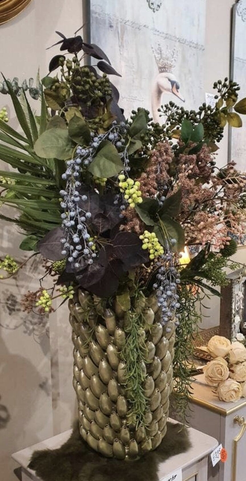 Prachtige groene keramieken vaas van Zita, gevuld met schitterende kunstbloemen. Een echte eyecatcher voor in huis! De vaas is in uitstekende staat en de bloemen zijn van hoge kwaliteit.