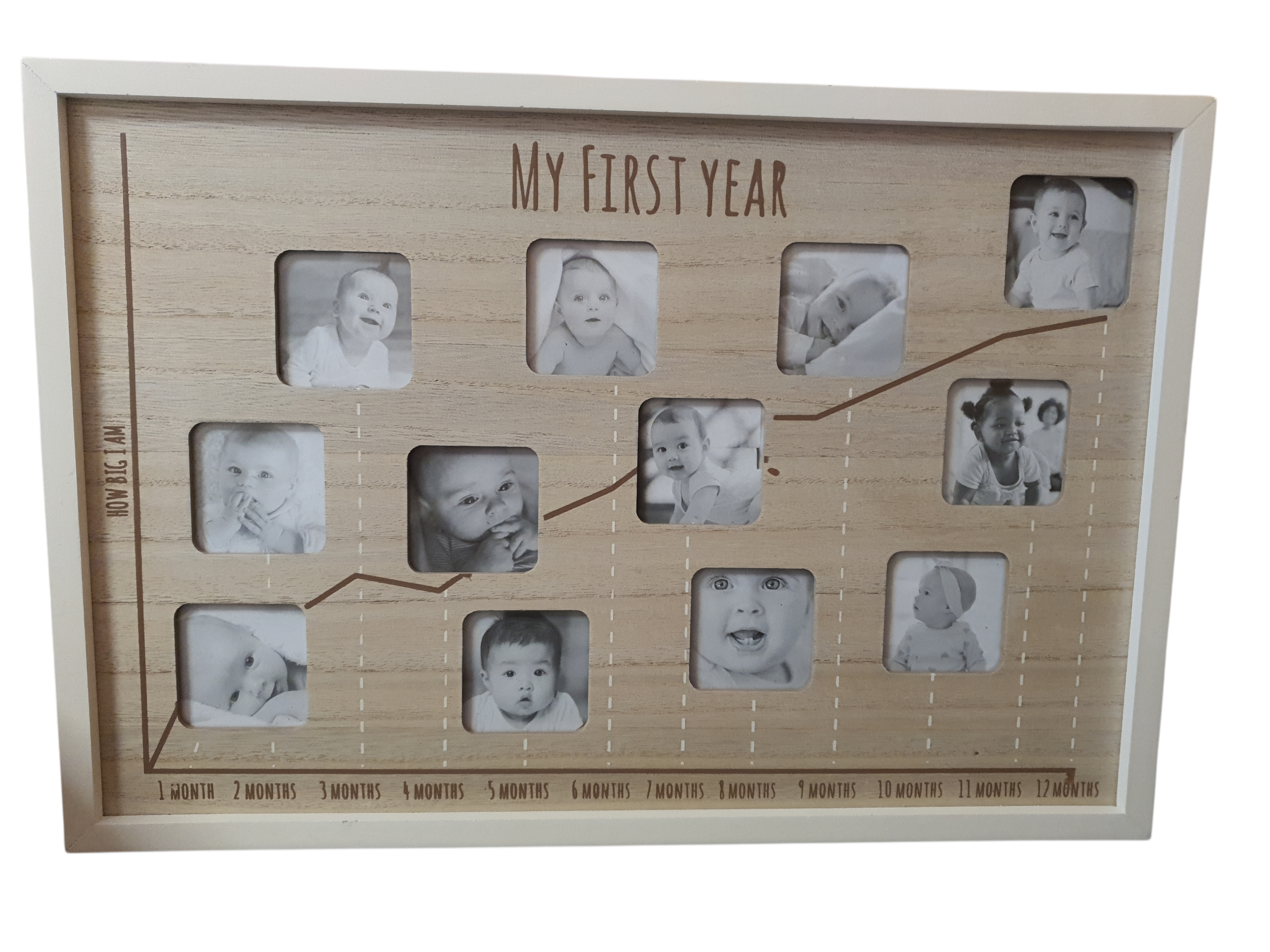 Fotolijst voor foto's van het eerste jaar van uw kind of kleinkind.