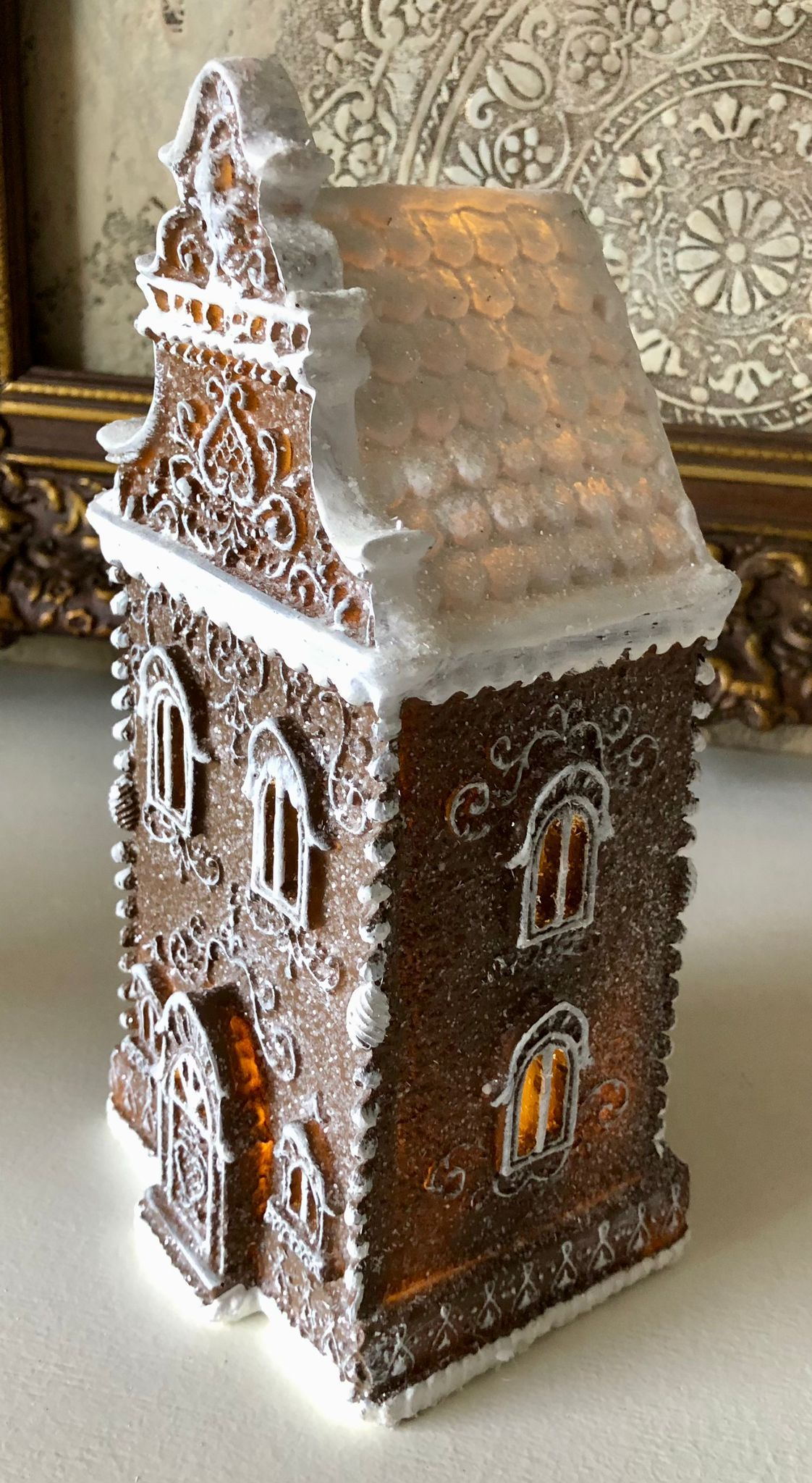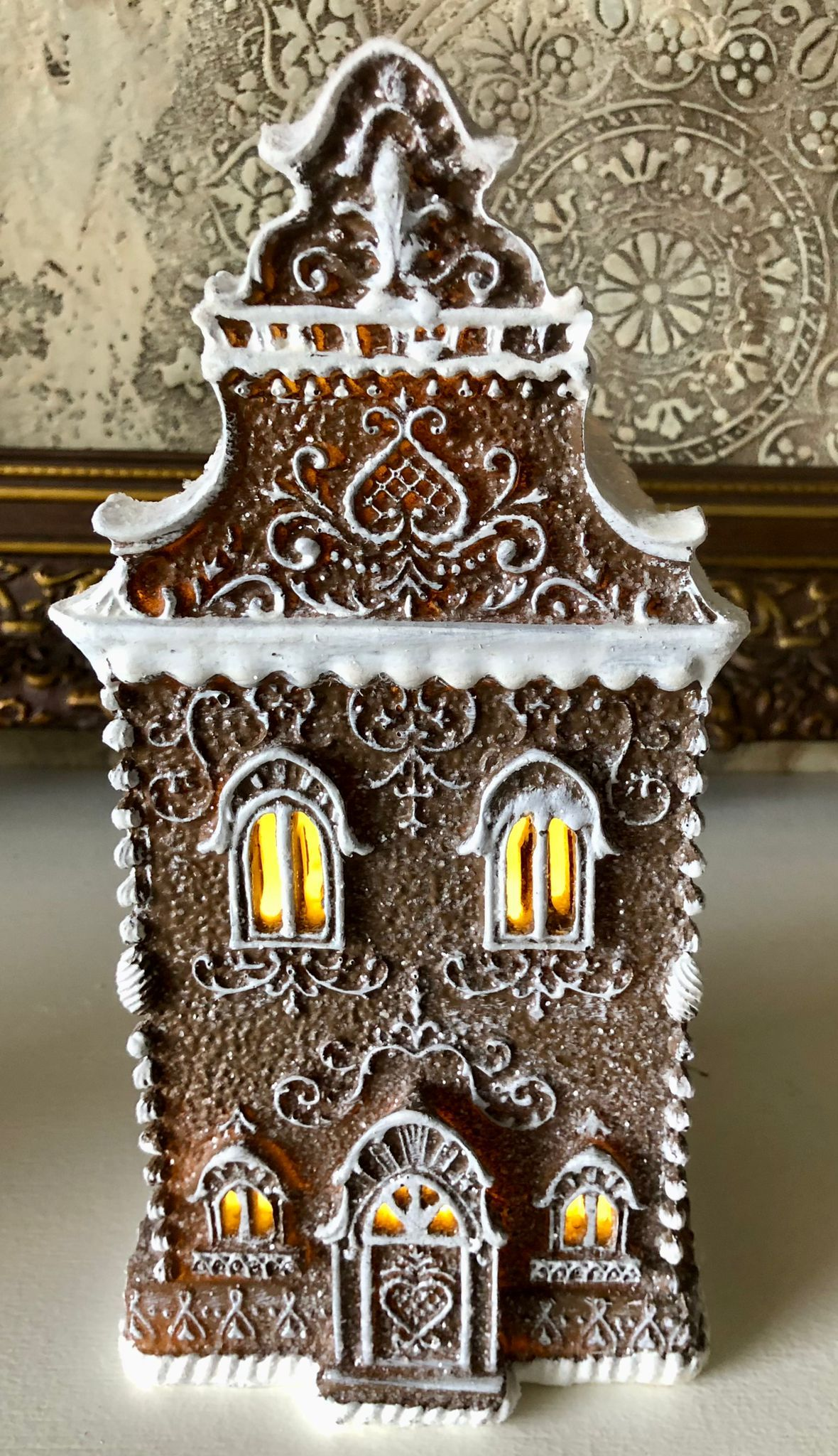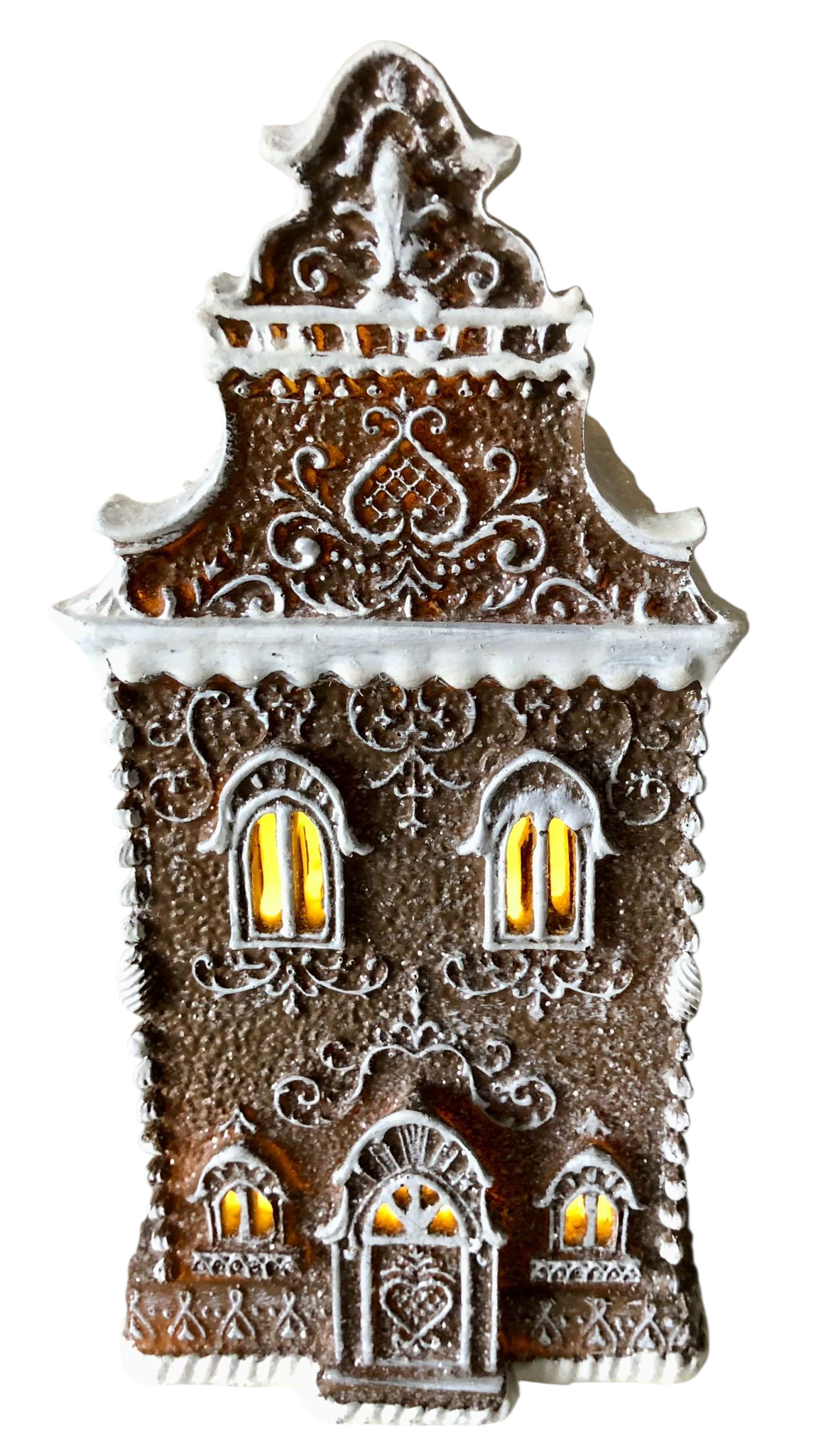 Gingerbread house met LED 12x11x25 cm Bruin Kunststof