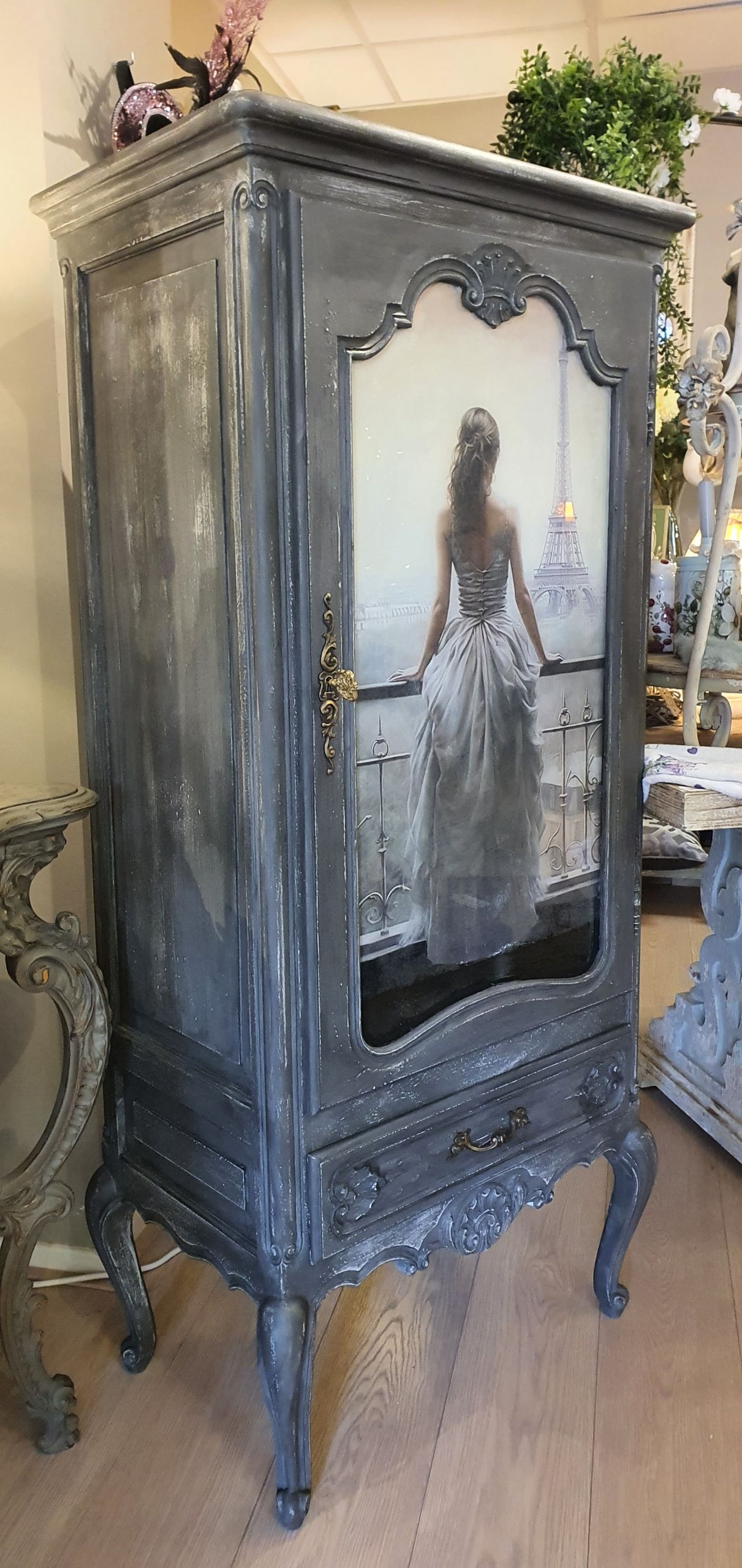 Heb op de deur een prachtige decoupage in victoriaanse stijl aangebracht.