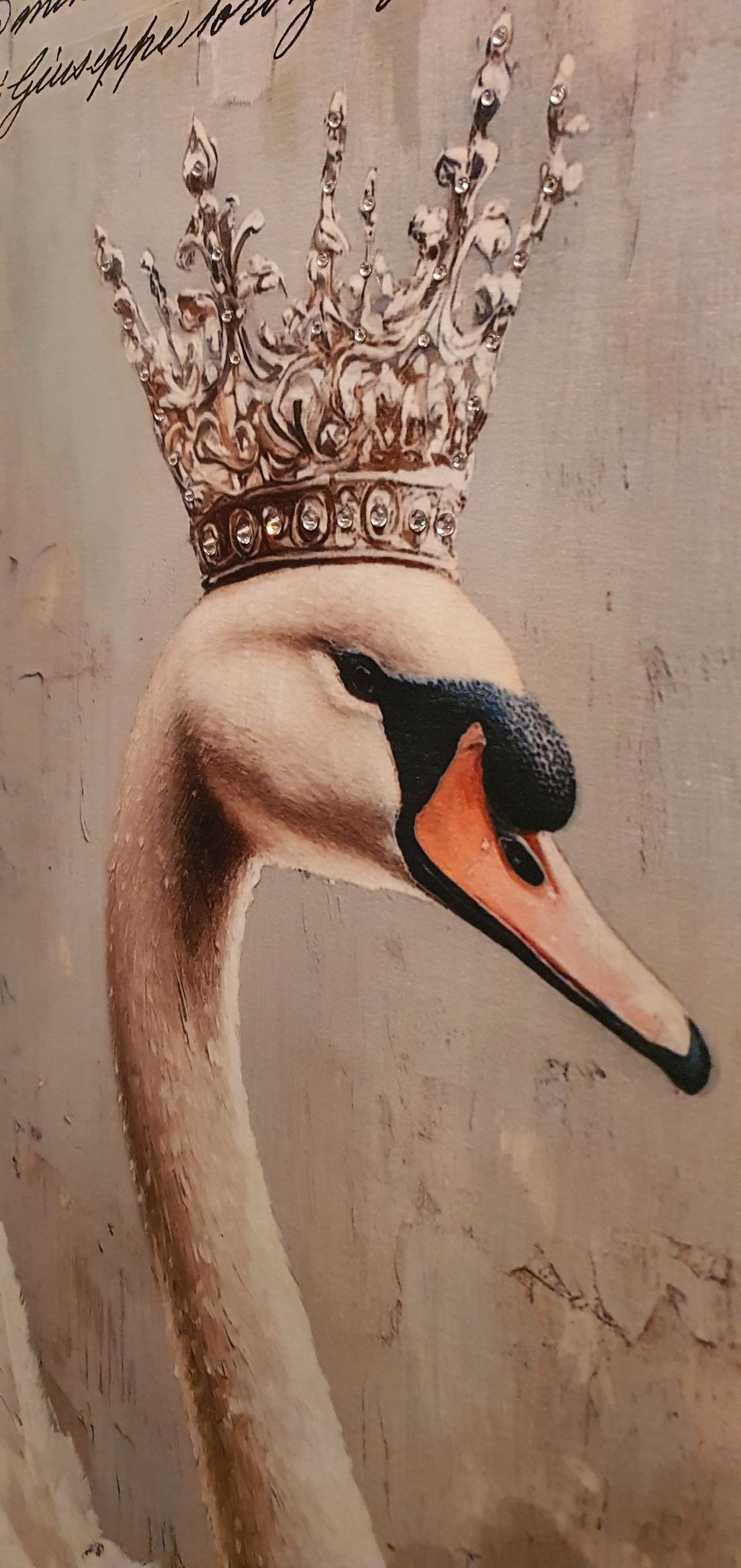 Set van twee brocante wandpanelen met een afbeelding van een zwaan met kroon.