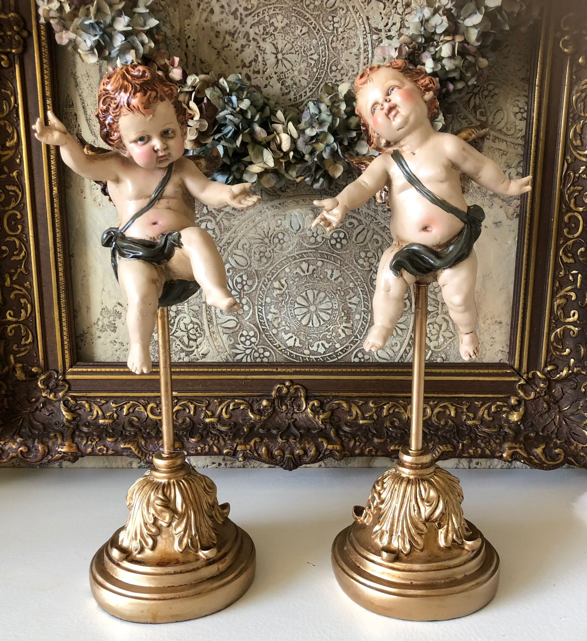 Deze 2 prachtige Engeltjevoets van dutch style staan niet voor niets op een mooi voetstuk geplaatst! Hoogte: 41 cm.