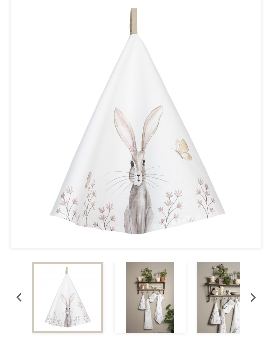 Katoenen thee, keukenhanddoek met mooie ronde theedoek voor Pasen met Paashaas. Uit de keukentextielserie "Rustic Easter Bunny".