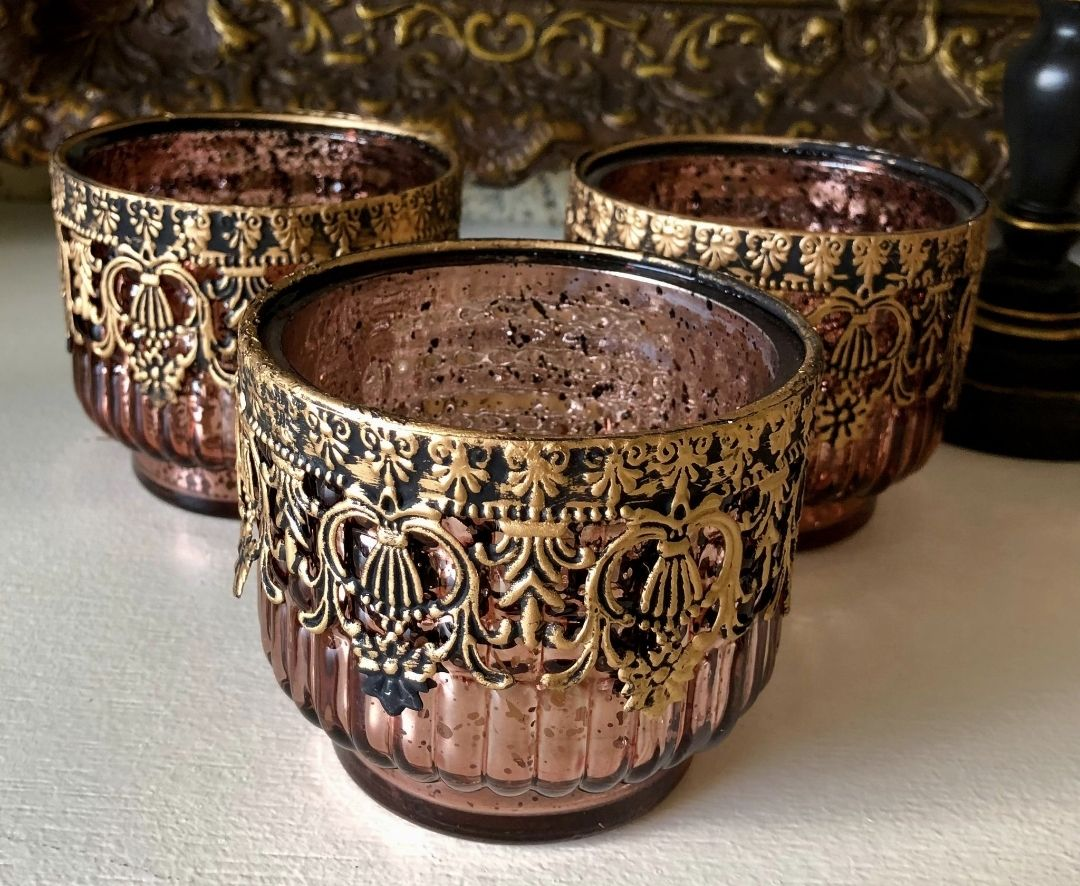 Geef je interieur sfeer en kleur met deze waxinelichthouder van PTMD! Het sfeerlicht is gemaakt van glas en is bronze van kleur. Daarbij is theelichthouder voorzien van een sierlijke goudkleurige rand en een ribbel patroon. Deze waxinelichthouder is 8cm hoog en heeft een diameter van 9,5cm. Plaats een theelichtje in de kaarsenhouder en geniet van sfeer tijdens de wintermaanden.